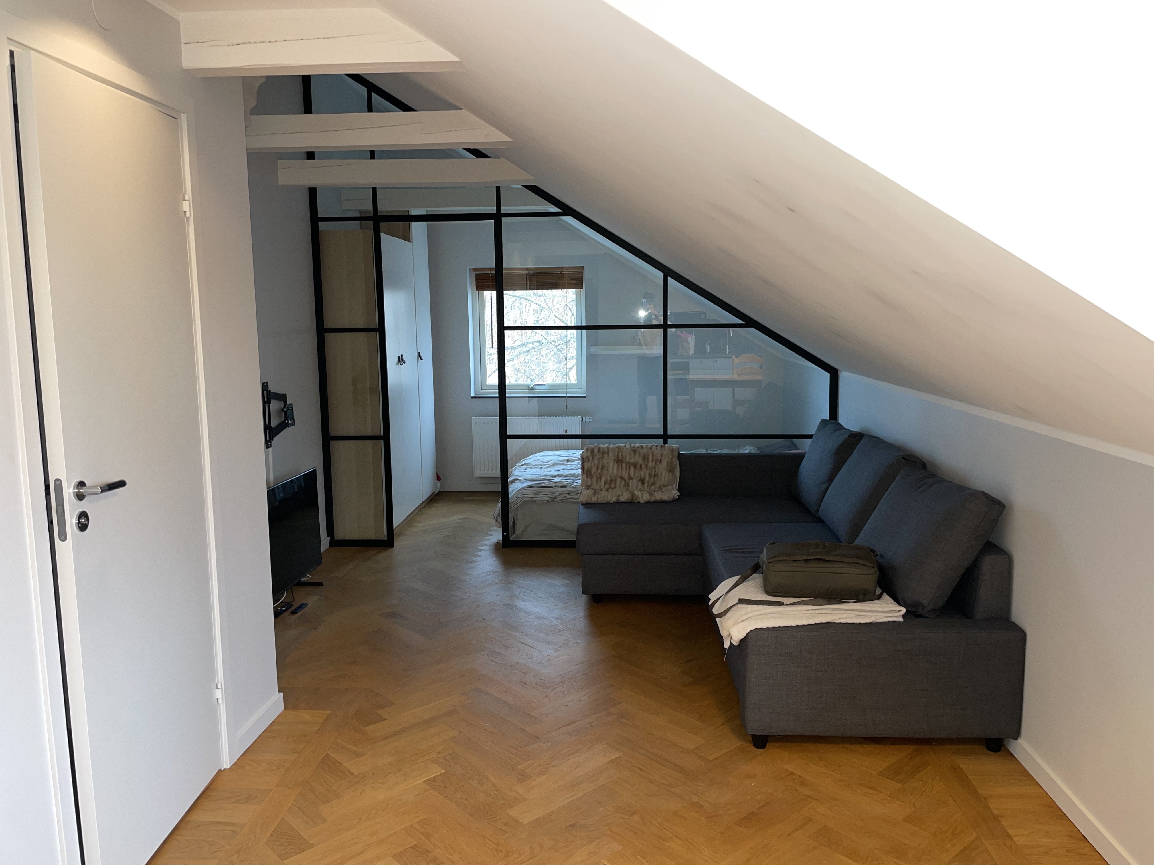 Centralt och närmast granne med universitetssjukhuset (US). En större etta med avskiljande industrivägg för sovrummet. Fräsch med vaxat trägolv, takbjälkar, moderna garderober och kök. Toalett med golvvärme och dusch. Hyrs ut till och med juli 2026 men kan eventuellt komma att förlängas beroende på egna förutsättningar. Kontrakt förutsätter godkännande från BRF